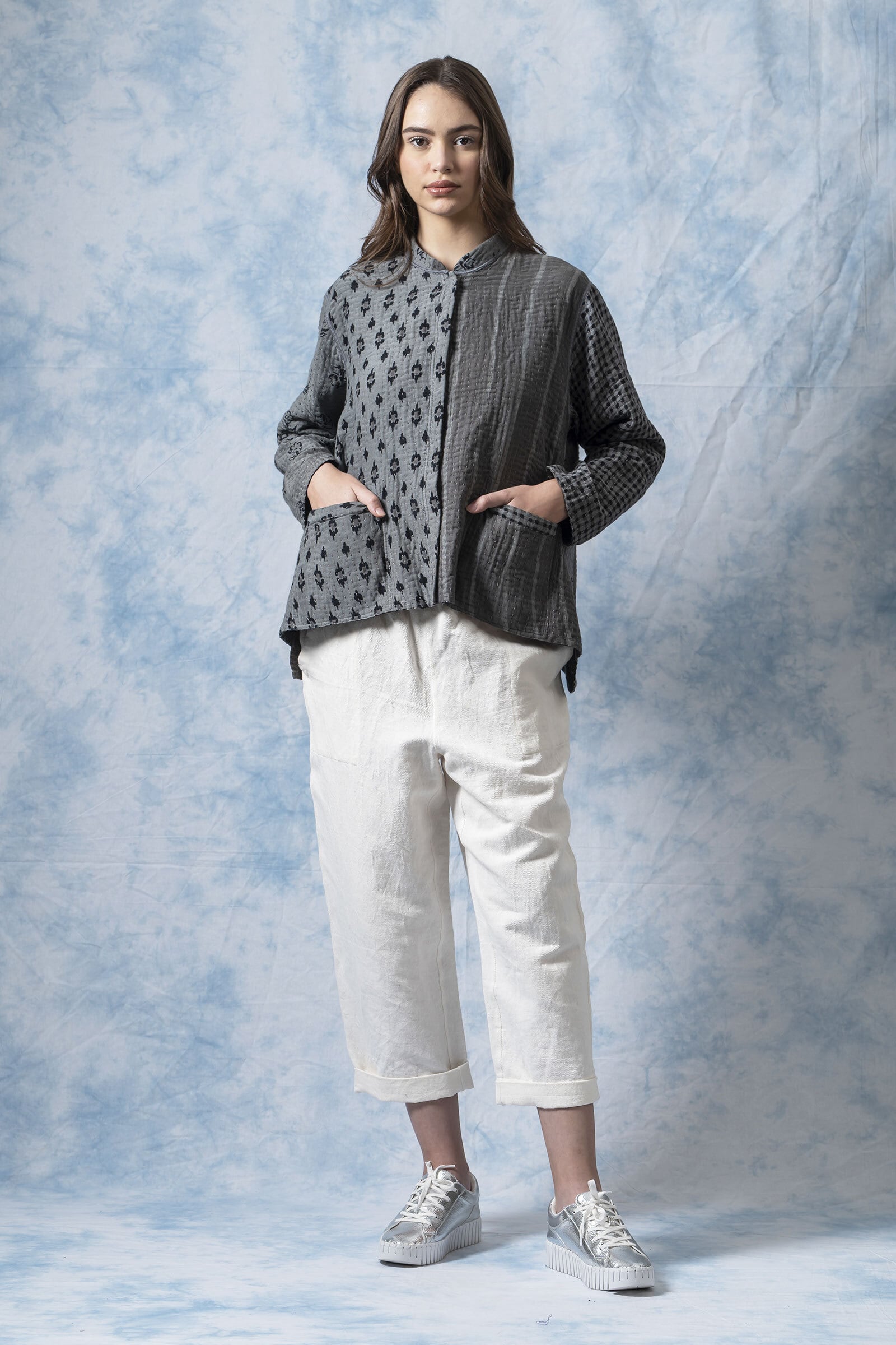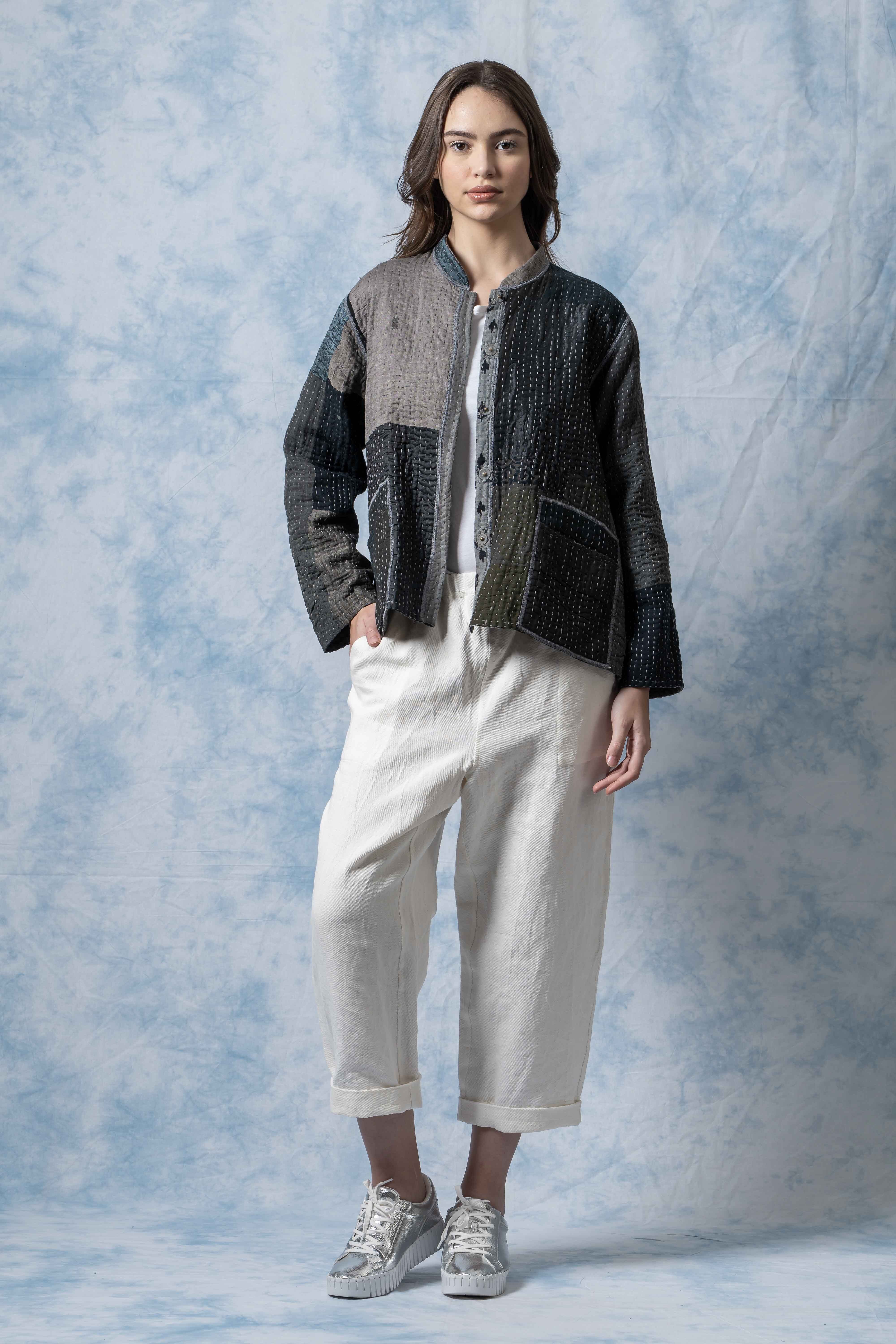 柔らかな風合いと軽やかな着心地のなかに、手仕事ならではの奥行きを感じられるジャケットです。