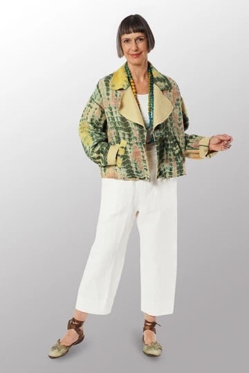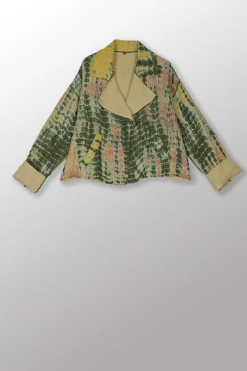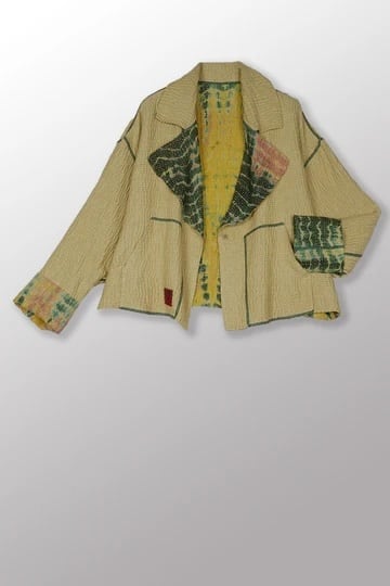ヴィンテージサリーを幾重にも重ね、丁寧な手縫いのカンタステッチで仕立てたリバーシブルジャケット。