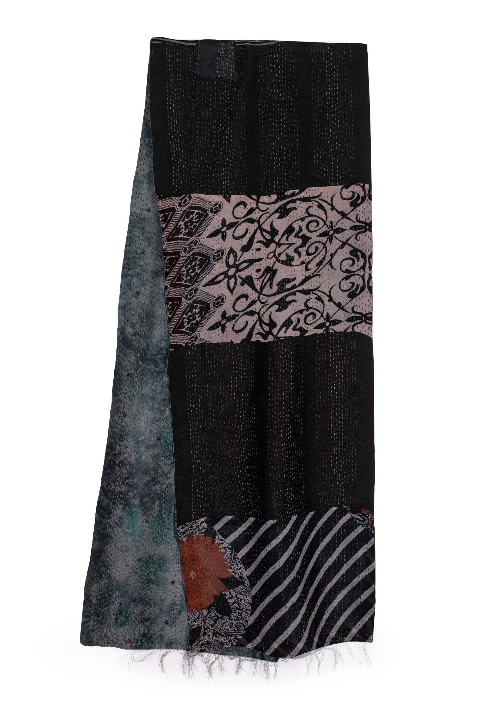 表はヴィンテージ・ジョーゼットとジャカード・シルクのパッチ